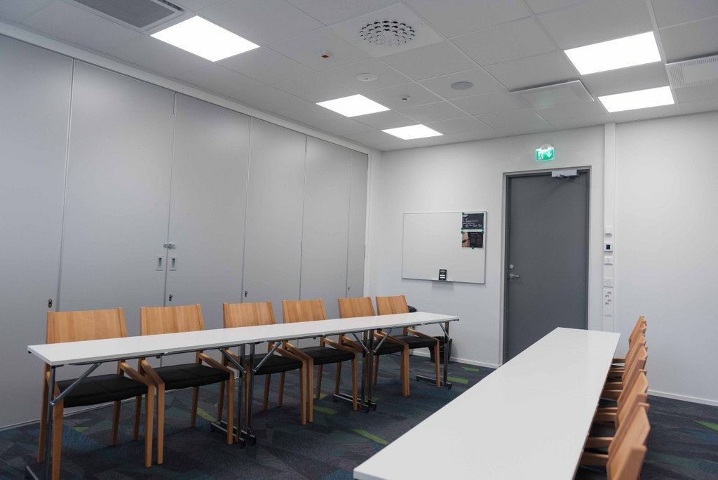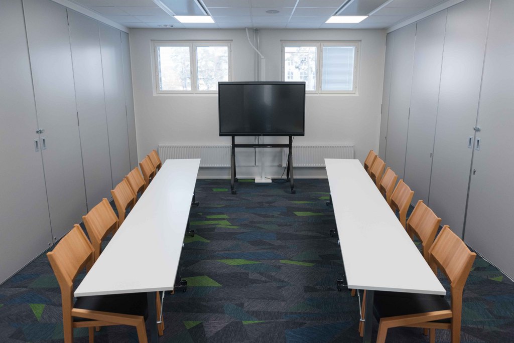 Kompakti mutta toimiva Alfred sopii erinomaisesti pienemmille kokouksille ja työpajoille. Luokkamuodossa tilaan mahtuu 12 henkilöä ja U-pöydällä 12.