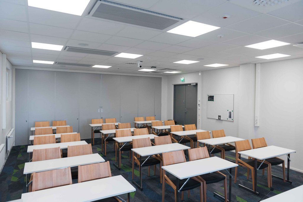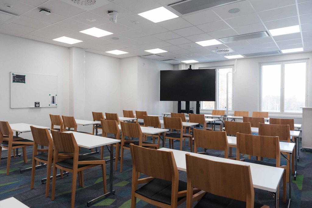 Tilava ja valoisa Axel sopii erinomaisesti koulutuksiin, seminaareihin ja suurempiin palavereihin. Luokkamuodossa tilaan mahtuu 30 henkilöä ja U-pöydällä 24.