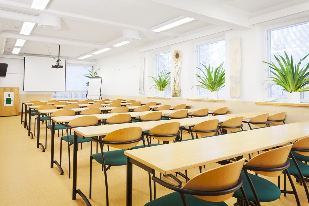 Tilava Synergia sopii erinomaisesti suurempiin koulutuksiin, luentoihin ja kokouksiin. Luokkamuodossa tilaan mahtuu 42 henkilöä ja U-pöydällä 28.