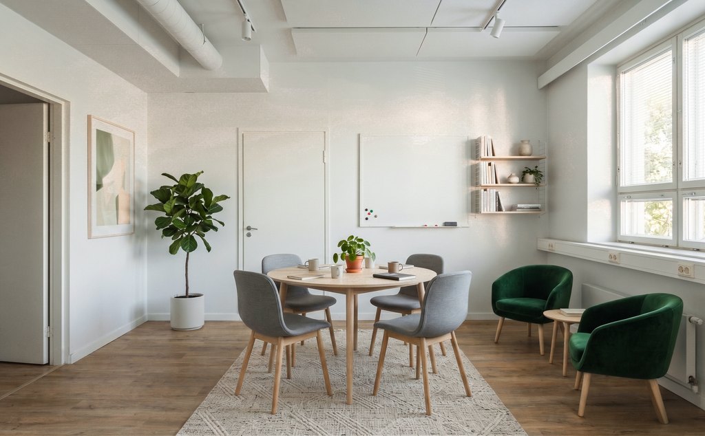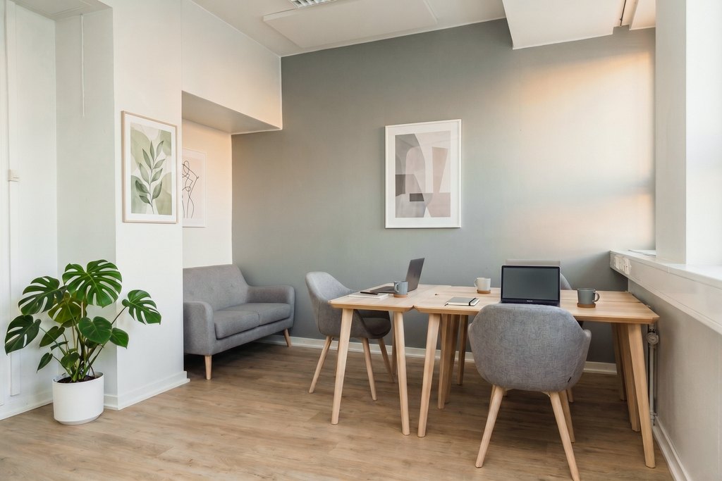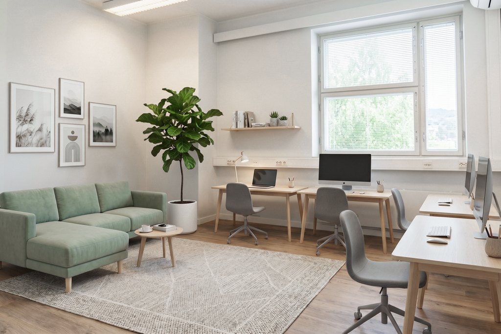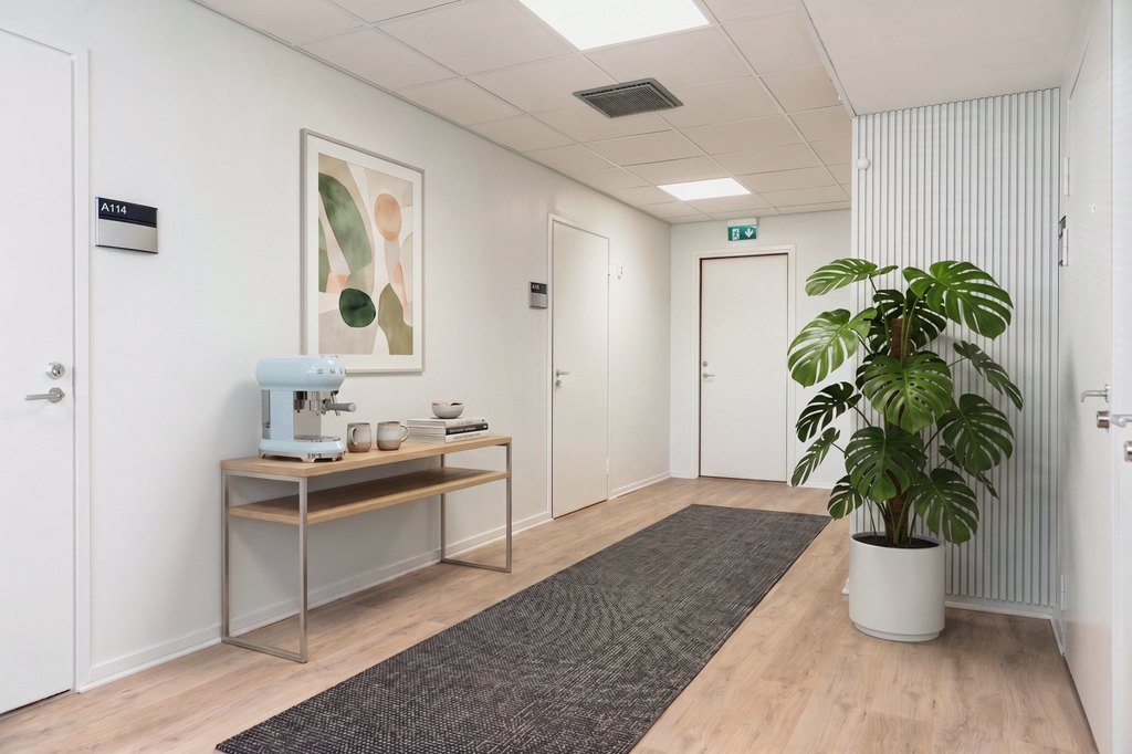 Monipuolinen toimistokokonaisuus S1-rakennuksessa. Tämä tila on täydellinen ratkaisu isommalle tiimille, joka arvostaa omaa rauhaa ja toimivaa tilajakoa. Kokonaisuus muodostuu omasta käytävästä, jonka varrella on neljä erillistä työhuonetta: